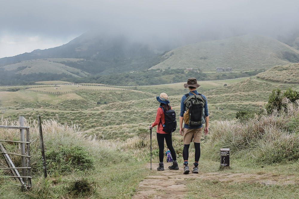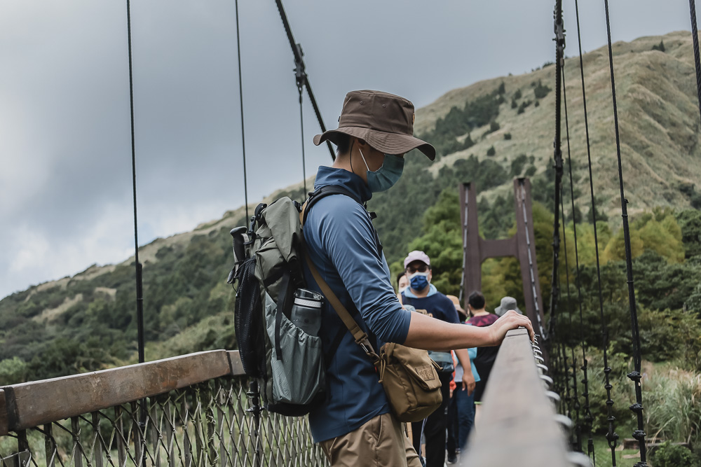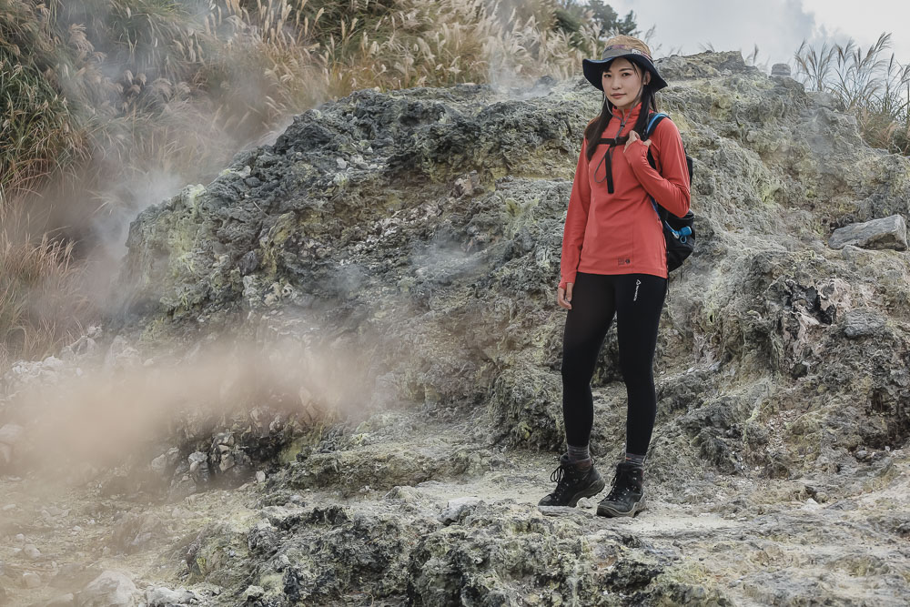 路程到了擎天崗後人流就瞬間湧現,尤其到了七星山更是驚人,太陽也從雲層中露臉,變得曝曬了起來,人一多我們也只能帶著口罩加快速度,即使氣溫上升 Mountain Stretch 排汗衣的調節性還是很不錯,不會有悶熱感,機能纖維快速吸收身體汗水,並及時排出是很重要的關鍵。
