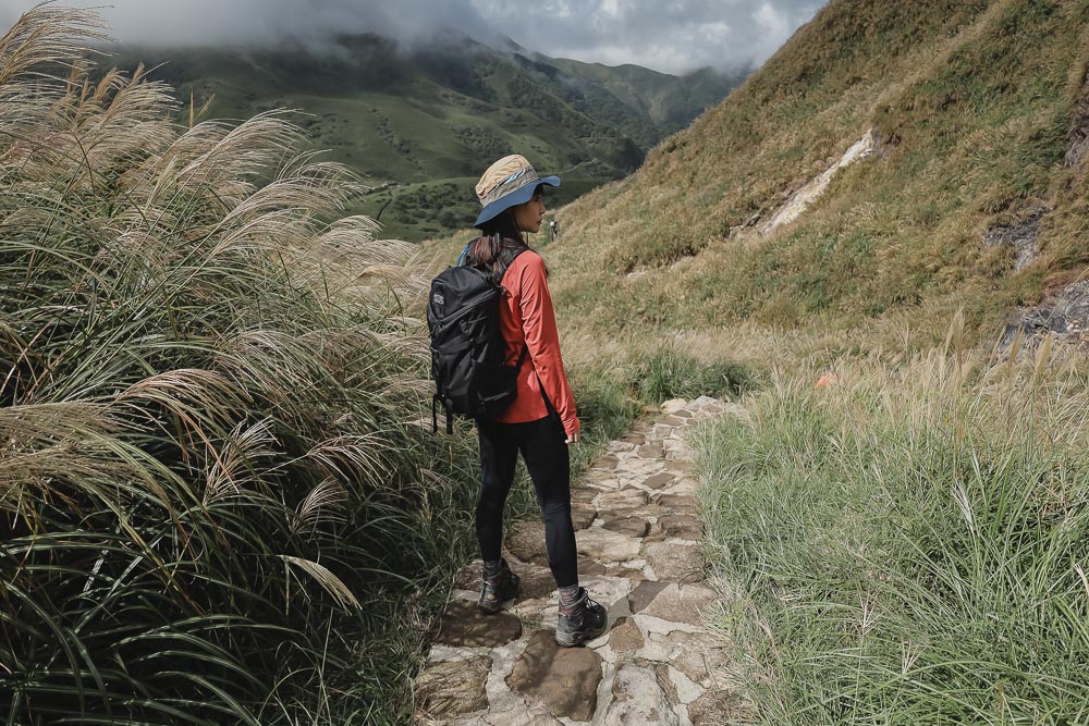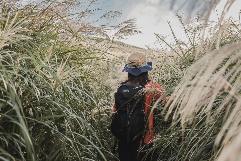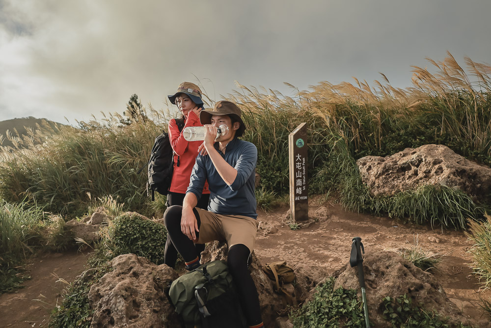 走到擎天崗,一望無際的草原配上自帶柔焦的芒花相當迷人,隨著長時間行走,流汗量跟補水量也同樣驚人,穿著Mountain Stretch 排汗衣可以明顯感受到透氣性及吸濕排汗的優異表現,因為陰天加上大霧濕氣重,若是身體的濕氣無法外排,行走過程會感受相當濕悶難受,尤其當秋冬季節風大、氣溫低時,在山上身體潮濕很容易失溫或感冒,增加登山的風險。