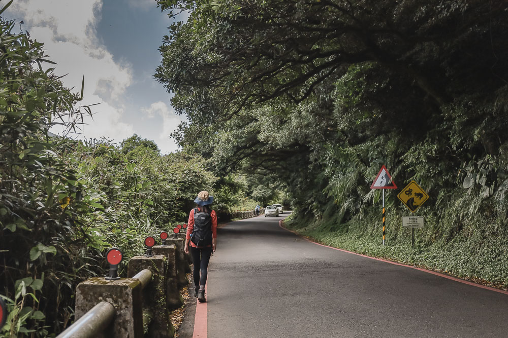 路程接往大屯山時須走一段公路,部分路段也有人車分流,走上這段大縱走除了里程遙遠,還得克服交通太方便,處處都有撤退點的誘惑。