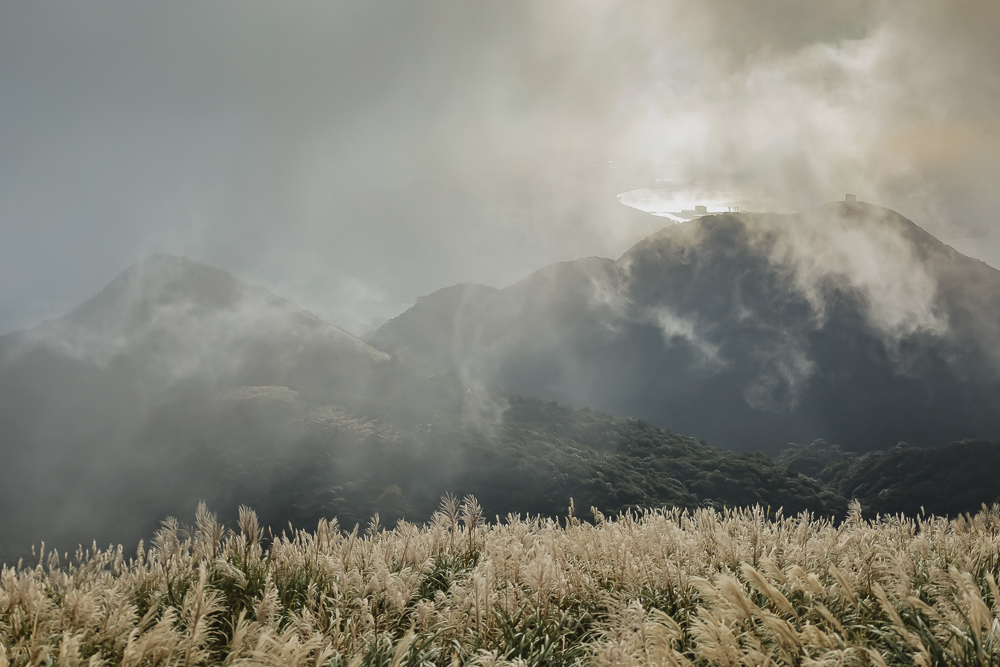 擎天崗一望無際的大草原已經鋪上團團芒花,當風吹動,像金黃的浪一陣一陣的湧動,我們坐在草地小憩,欣賞著這片季節限定的美景。