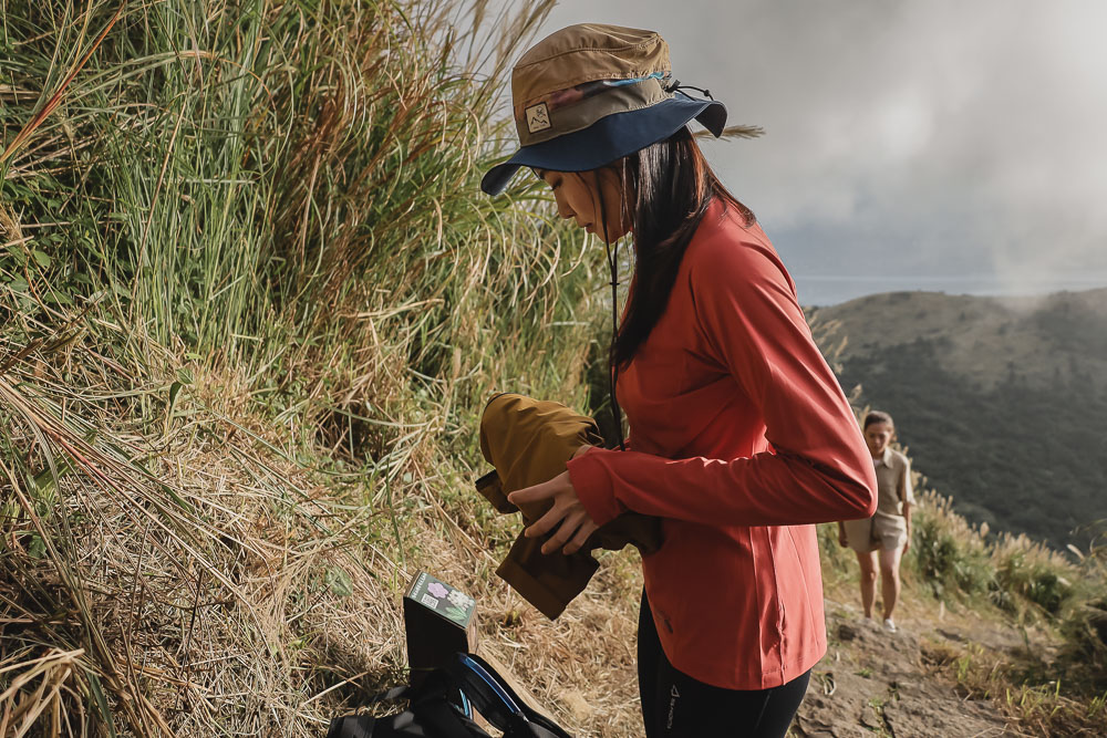 時序進入深秋後,山上不只天黑的早,傍晚的溫度也降得很快,穿著 Mountain Stretch 排汗衣讓我安心不少,立領和長袖讓身體多了一層溫柔包覆,適應山上的溫差變化。