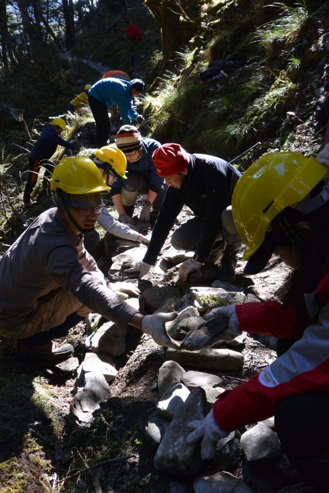 手作步道是一項慢工程,有可能一整天下來只完成不到百階,相比現代工程,真的非常沒有效率。但是在手作過程中,衍生的各種化學變化,形成一個良善循環:
