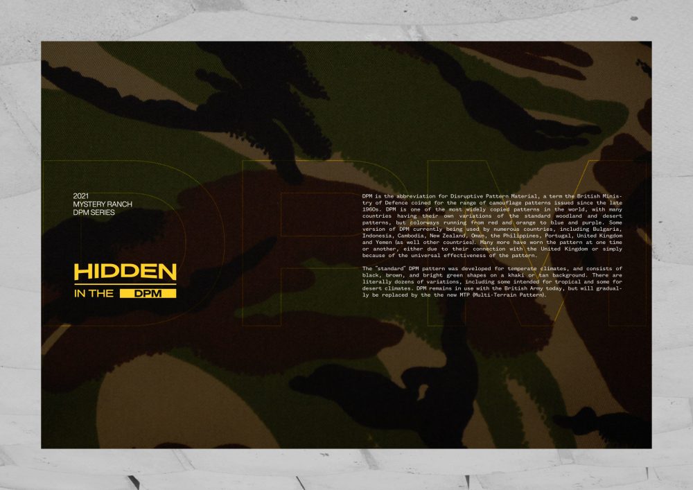 今年秋冬,MYSTERY RANCH推出全新「 DPM 」系列, DPM ( Disruptive Pattern Material ) 為1960年代以來英國軍方使用的迷彩圖案通稱, MYSTERY RANCH 將此款迷彩圖案重新設計,讓包款在日常生活中更容易搭配使用,也保有經典元素,使 MYSTERY RANCH 的 DPM 迷彩更加與眾不同亦能廣泛搭配。