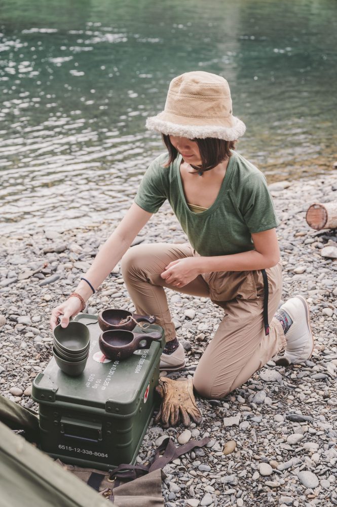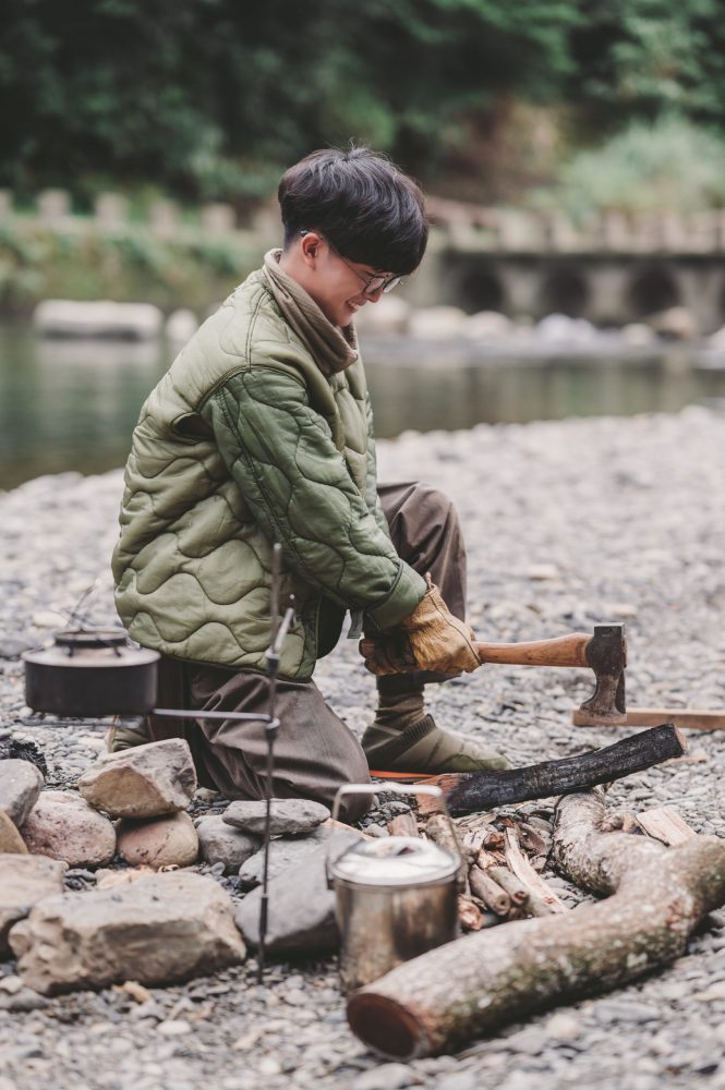 讓我們很好奇的是,對野營情有獨鍾的兩人,在營地有沒有什麼幫助放鬆,或是更加 chill 的私人小物?溫蒂說她野營有時會帶上「茶具」,「我有學過日本抹茶跟中國茶道,因為當初看我媽學好像很好玩我就跟著學了。」