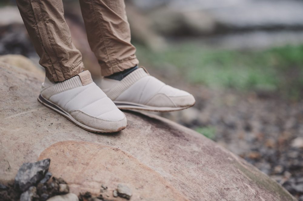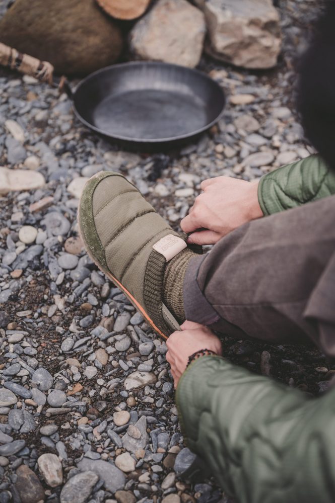 提到風格,就不能不提穿搭,野營你都怎麼穿呢?在營地耍廢的時候,很多人選擇赤腳,或是穿拖鞋,可是在氣溫相當低的戶外,雙腳難免受寒發抖。所以有些人乾脆穿著襪子再穿進涼鞋或是拖鞋,無奈寒風依舊透過襪子纖維細縫鑽進骨子裡,儘管手上的熱可可溫暖了雙手還有胃,腳底的寒意卻時不時讓人分神。美國潮戶外第一品牌 TEVA,以「戶外即生活,生活即戶外」的核心概念,於今年秋冬推出 ReEmber 2(又稱波蘿麵包鞋),是一款專為戶外露營而生的鞋款,不僅能妥善保暖雙腳,同時又很好搭配,甚至還有兩種穿法,讓營地生活更加便利舒適。讓我們跟著嘉恩與溫蒂一起看看這雙波蘿麵包鞋有何神奇之處吧!