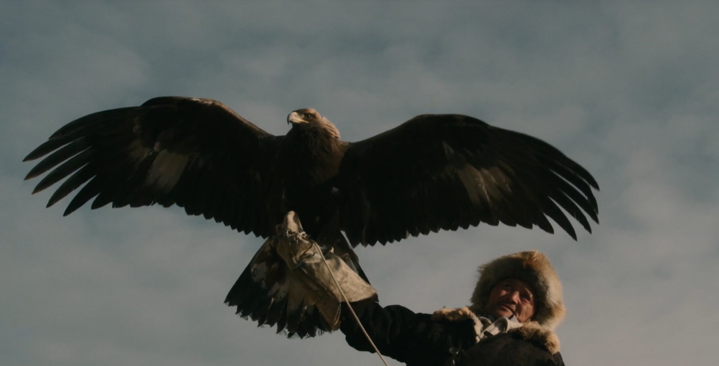 出生於西蒙古阿爾泰山脈的 Deluun 村莊,29 歲男子 Konki,在草原上熟練的訓練金鵰,只見金鵰張開巨翅,離開他的手臂,向上飛起,在空中盤旋尋找獵物。