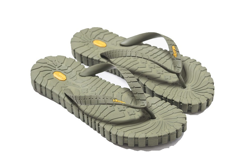 而這個有”黃金大底”之稱的 Vibram 近期將與巴西設計師 Fernando 和 Humberto Campana 推出 Vibram Tropical Carrarmato Sole,概念為重新演繹第一代 Carrarmato 經典大底,並以夾腳拖款式呈現,乍看是上下重疊的 Vibram 大底,但如果再仔細一看就會發現上頭的刻紋並非傳統環狀排列,而是根據我們腳底運動時的肌肉運動來做出流線型刻紋,除了更符合人體工學外,複雜的結構也展示了這雙 Vibram 夾腳拖擁有極佳的抓地力,搭配上軍綠的配色,整雙鞋呈現的視覺形象與 Carrarmato(坦克車)這個名稱確實頗為相符合。