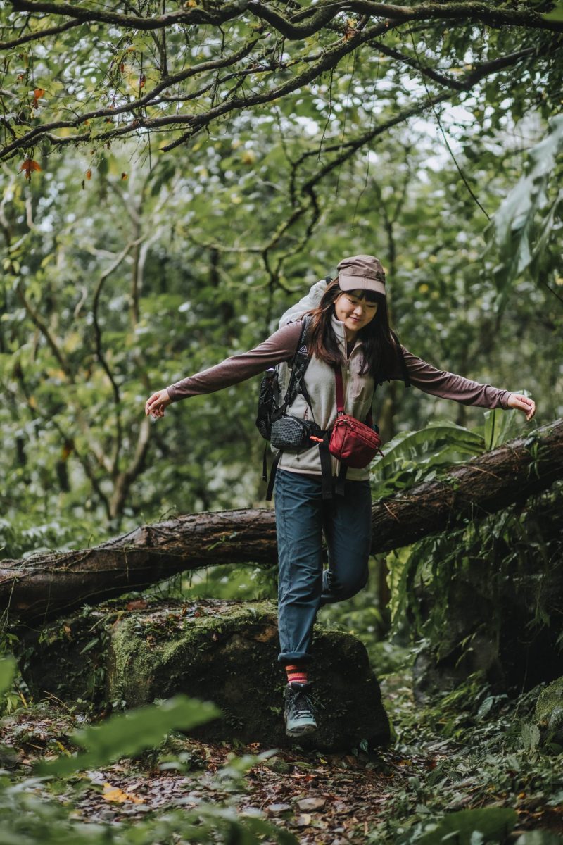▲穿著 Salomon VAYA 探訪淡蘭古道中的崩山坑古道,Ruru 表示自己也很喜歡走富有歷史感的古道。但以往考量類似古道通常較為濕滑,她會選擇雨鞋應戰,可是穿了 Salomon VAYA,她才知道原來有這麼不滑的登山鞋。
