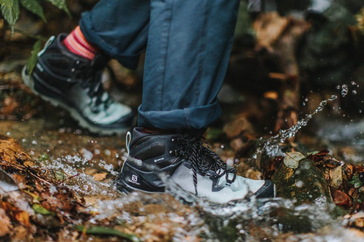 ▲登山鞋必備的防水性能 Salomon VAYA 也沒少,搭載 Gore-tex 防水科技,不僅抵禦雨珠,涉水通過淺溪也完全沒問題。