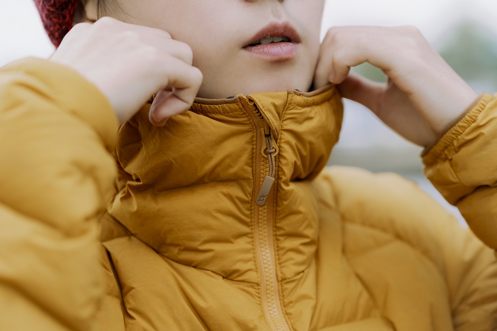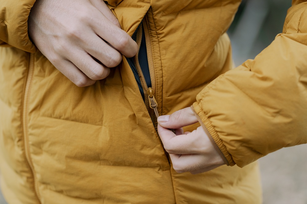 羽絨外套多用於氣候寒冷的時候,因此在寒冷的天氣下依舊能夠順暢拉合的拉鍊變得格外重要,口袋為隱藏式,搭配了整體外套的一致性,使外表看起來更為美觀,在兩側手袋及前拉鍊均採用 YKK ®拉鍊,並有舒適的羊毛內裡下巴防護擋風板及YKK® VISLON® 前拉鍊,可快速通風或保暖。
