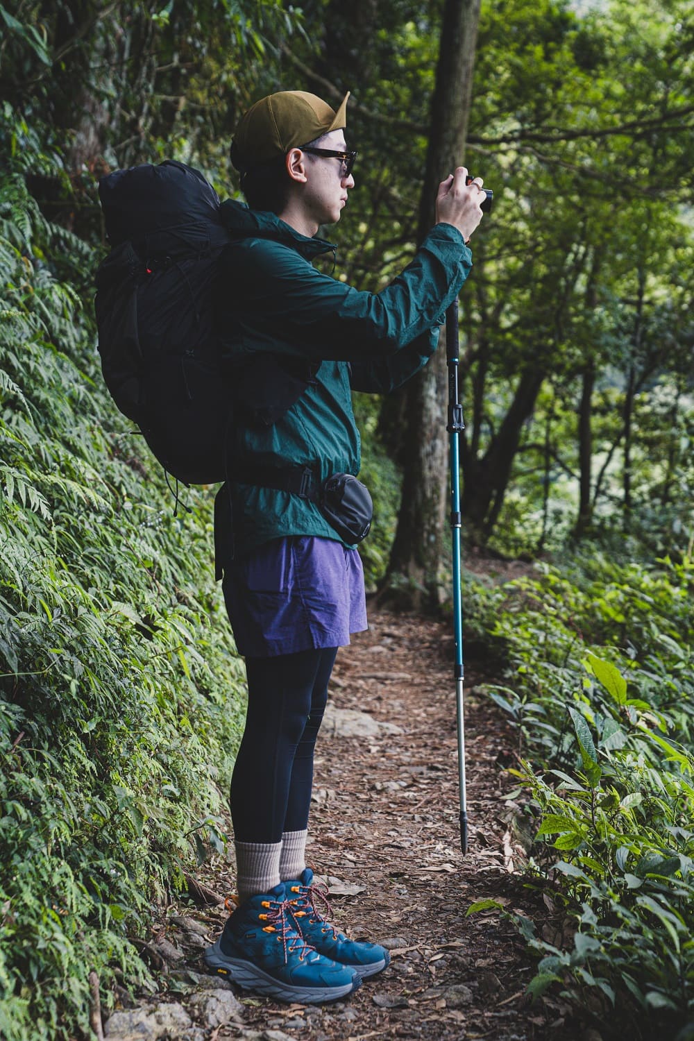 揹上最近熱騰騰收到的戰利品,不僅背包,就連腳上都是屬於輕量登山鞋的NBJ,我們一行人跟著他的腳步,準備展開一堂在大自然中學習的輕量化學堂。