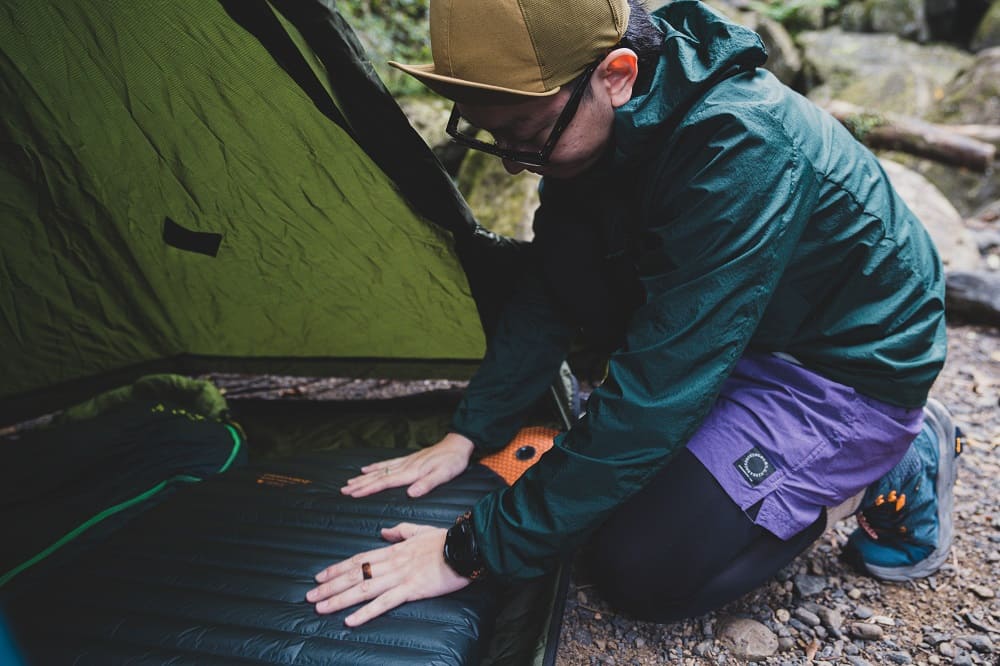 我們找了一塊空地,NBJ俐落地將裝備搭起,問起他換這些裝備是不是也瘦了荷包,「輕量化就是貴是個都市傳說」,NBJ笑說。「輕量化裝備不是因為它輕所以貴,很多重裝裝備也是貴,但他們的共通點都是用料好,都能夠用很久甚至一輩子,這樣換算一點也不貴!」秉持小氣少年精神,NBJ也推薦大家現在有很多戶外裝備租借店家,可以先從租借開始了解適合自己的裝備,有句話叫「買錯最貴」,與其盲目追隨,不如從瞭解自身合適開始。