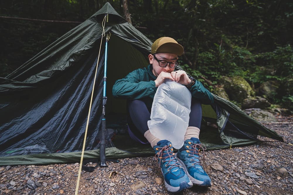 NBJ跟我們分享打包技巧,「輕量化就是想辦法減少帶的東西,像睡袋、睡墊枕頭等等,我都不會用本身的收納袋,集中放在普通塑膠袋裡、食物盡可能全部塞在鍋具中,減少分裝袋的使用,各種幾克的物品省去後,累積起來我就可以多帶一瓶可樂換得小確幸!」