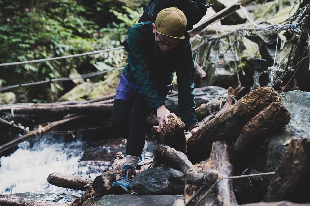 ▲途中切換不同地形,如上下階梯、需攀爬的吊橋等,皆給予足夠的足部緩震性能,踏出的每一個步伐都更安全舒適,黃金大底的抓地表現也能讓你在濕滑的吊橋更為安心。