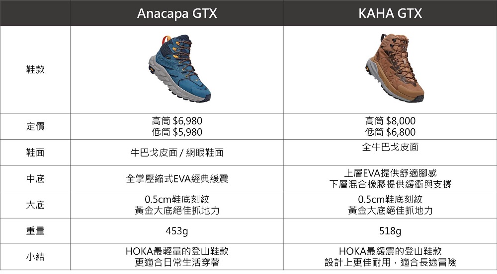 HOKA 登山鞋大比較! Anacapa 和 KAHA 系列有什麼不同?