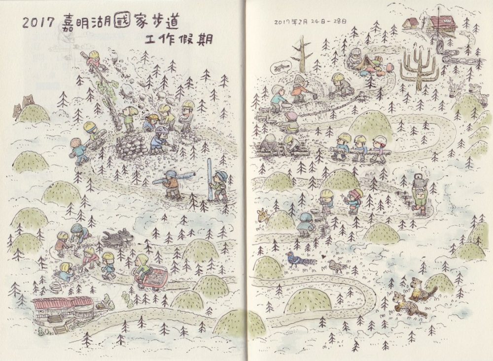 ▲沈恩民畫下手作步道的工作情況。