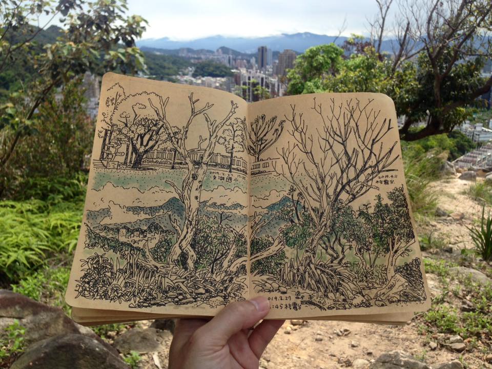 工作壓力之大,讓他重新走入山林、重新拾起畫筆。「我曾跟朋友去唱歌、逛街、看電影,但這種『都市型娛樂』好像不太適合我。在山上,我才能完全放鬆,重新充電。」大學畢業後他再沒什麼機會手拿畫筆畫畫,剛好碰上工作的倦怠期,以及試圖找到屬於自己的風格,他從速寫開始找回自己的「手感」。「一開始畫真的是醜到不行,不想承認那是自己畫出來的東西。」他笑著說。