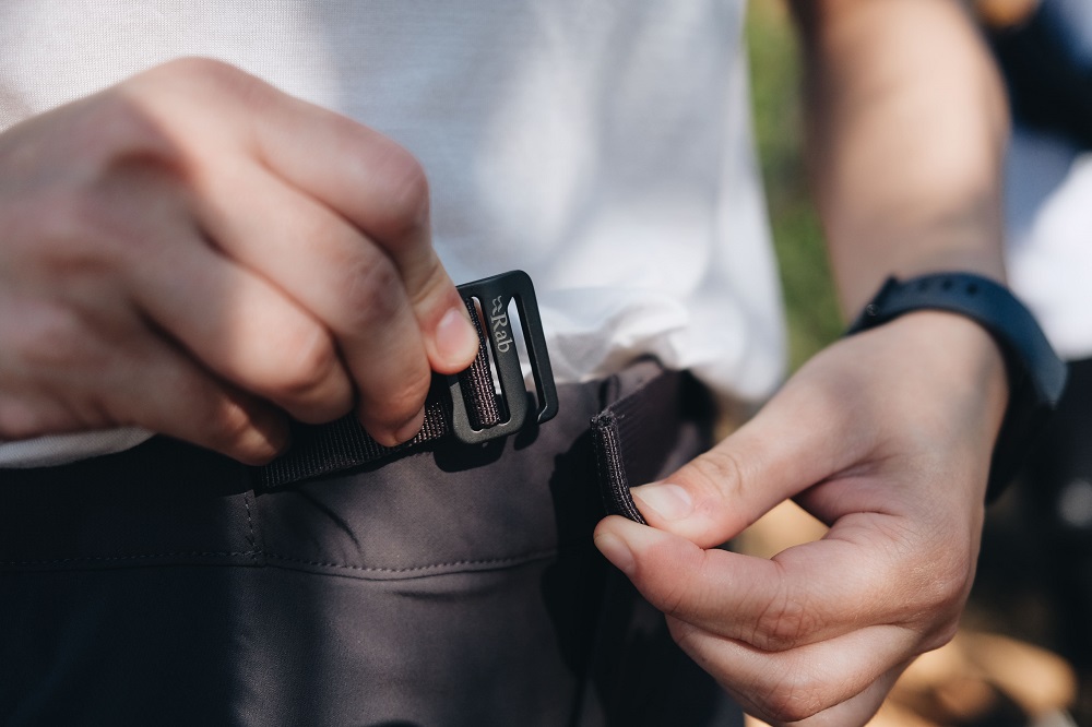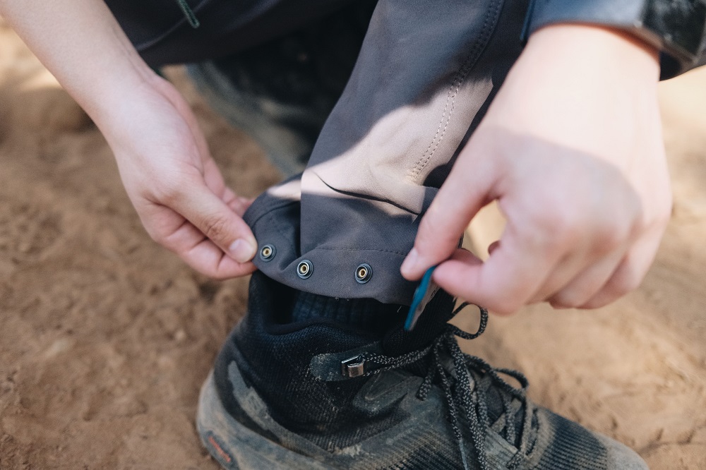 褲管的暗扣可以輕鬆調整褲管寬度,適合各種鞋類。