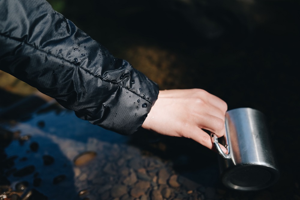 一般不防水 *Rab的羽絨都有做抗水塗層,若遇濕氣或雨水較不會這麼快濕透喪失保暖性 |