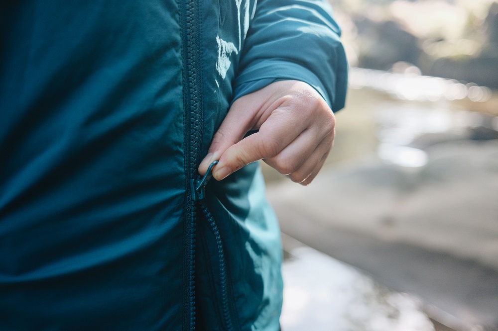 而 Xenair Alpine 的拉鍊是YKK VISLON®的雙向前拉鍊,這樣在休息的時候可以把下擺拉鍊拉起,在活動上也更加容易與方便。
