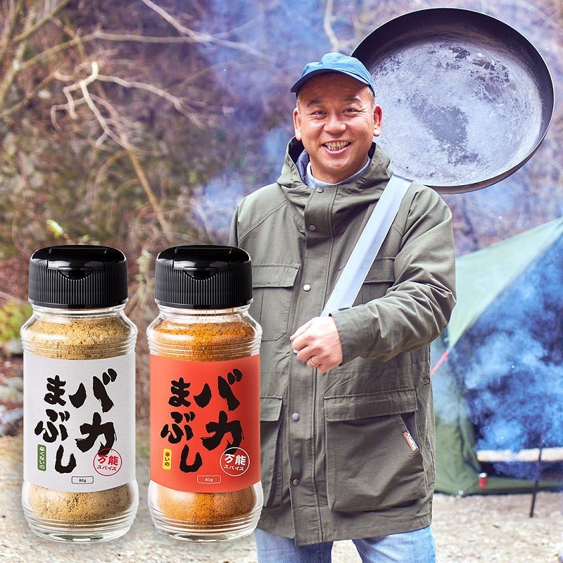 由日本藝人「西村瑞樹」於2021年新推出的香料品牌「バカまぶし」,在官網上可以看到僅販售一款調味料,分為原味及辣味,本身為露營達人的西村先生,親自調配出一罐就能適用在魚類、蔬菜及肉品的調味料,帶有小茴香和芝麻的香氣,還有辛辣的提味,能讓每道野炊料理的口味增添更多層次。