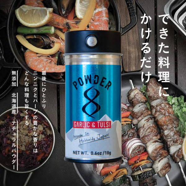 來自北海道的戶外香料品牌,如外包裝所寫「GARLIC&TULSI」,成份就僅有大蒜及聖羅勒(打拋葉),極簡的成份,未使用任何添加劑,且不含鹽,即便撒再多也不怕過鹹。