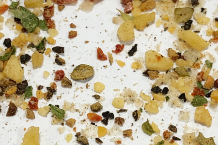 堅果和岩鹽咖哩混合,以碎堅果和喜馬拉雅岩鹽為基礎,具有小茴香和印度咖哩的香味。撒在切碎的沙拉上,搭配切成大塊的燒烤肉都合適!