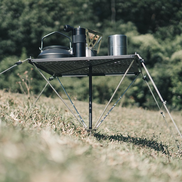 Thomas從小就生長在大自然的環境中,父親更是童軍老師,產品設計皆以香港為出發點,並結合最原始的野外求生技能,讓每個戶外人都能在產品中享受到露營的初心。以店中熱門商品The Platform為例,就是因應香港本土環境而衍生出來的設計,香港是個山多平地少的地方,尋找平地露營總是每個人共同的煩惱,較平坦的地方會優先給予蓋帳蓬,其次才是活動空間。傳統的四腳桌子無疑是最「四平八穩」,但在崎嶇不平的野外環境下成為了最大的缺點,只要地面稍有不平,桌子便會搖晃,靠著四角的調節繩來調整桌面的水平,靠著專屬而設的水平儀,大家也能簡單調整出一張違反自然的平坦桌子。