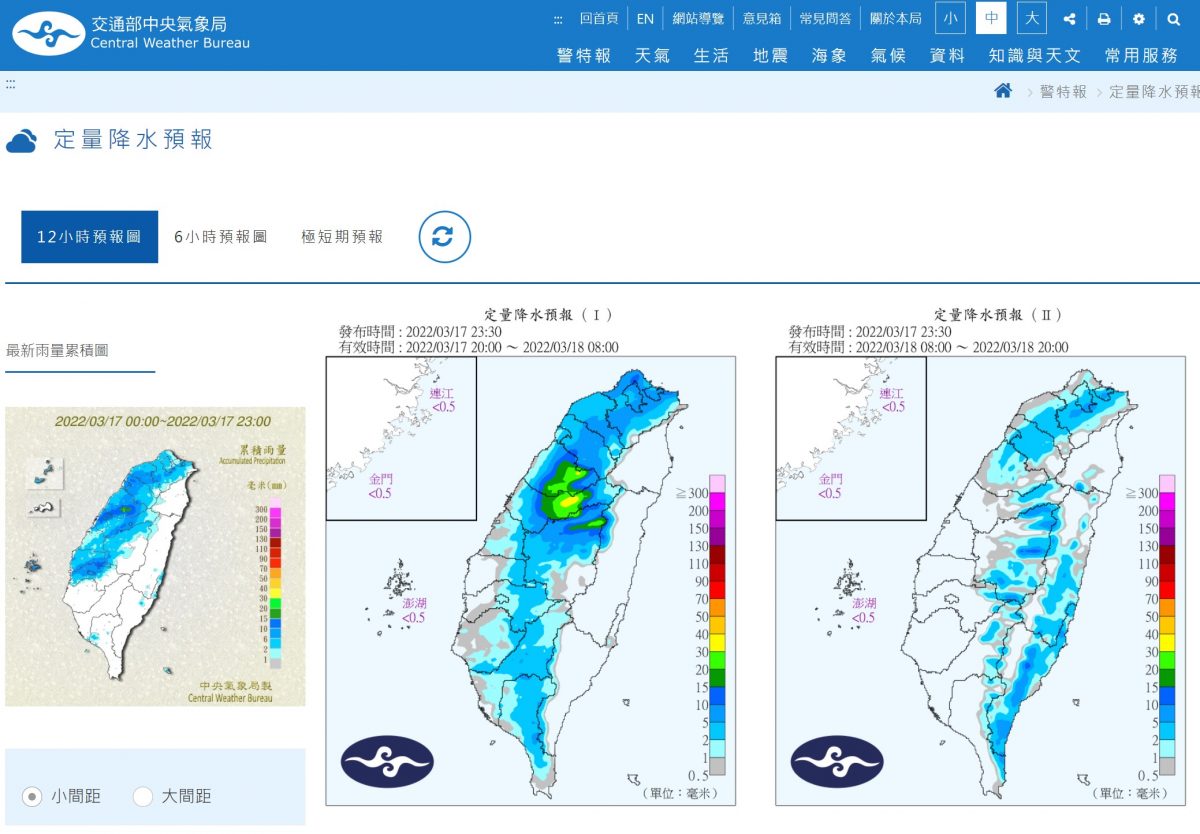 如果看到圖資顯示降水達到 90mm 以上,就表示該地有很大機率發生強降雨。但因為發生地點隨機,很難預測精準位置。所以建議大家,如果看到圖資顯示有強降雨發生可能性,就要留意。就算不是下在自己所處位置,也可能因為下在鄰近山域導致溪水暴漲、土石流。