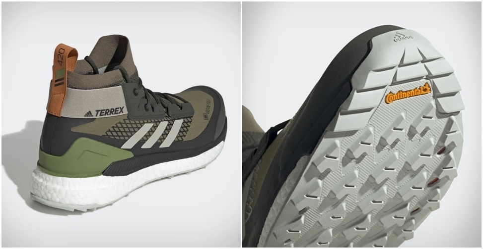 先說外型好了,運動品牌推出的登山鞋款基本上並不會讓你感到太過粗曠,至少在 Adidas Terrex Free Hiker GTX 上你看不到這點,光是以 Primeknit 打造的高筒襪套鞋身就讓整雙鞋稱滿了流暢俐落的視覺感,更不要說它的包覆性,在跟一般鞋款相比的狀況下,能夠完全服貼又不會過於壓迫是襪套最大的優勢,在配色上選用軍綠色不免和高筒鞋身相呼應,呈現一種類似軍靴的造型,不同材質相對應不同色調,讓你一眼就能明白 Adidas Terrex Free Hiker GTX 能給予你多種不同的功能體驗。