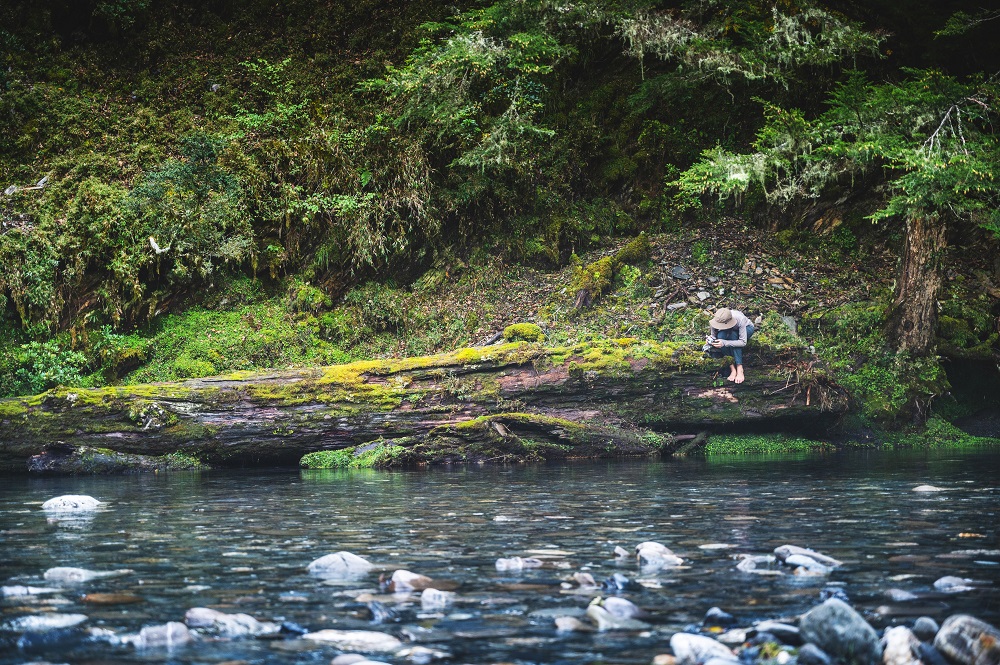 初聽〈棲居在溪源之上〉,由輕柔的鋼琴聲揭開了序,MV畫面不是壯麗的空拍山景,而是那些波動的溪水、棲居在溪谷細小的昆蟲,隨後有了木吉他、大小提琴和豎笛的聲音加入,大提琴沉穩的聲音,就像我們踏在山林中,有點未知、又充滿好奇心的每一個腳印,一路跟著他們從嘆息灣、錐錐谷、童話世界,最後再走到致潔這次的創作源頭—丹大溪源。