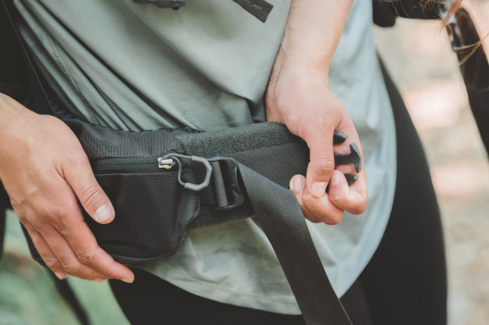▲臀帶雙側皆有加大的拉鍊收納袋,可放置手機、行動電源、行動糧等隨身物品。
