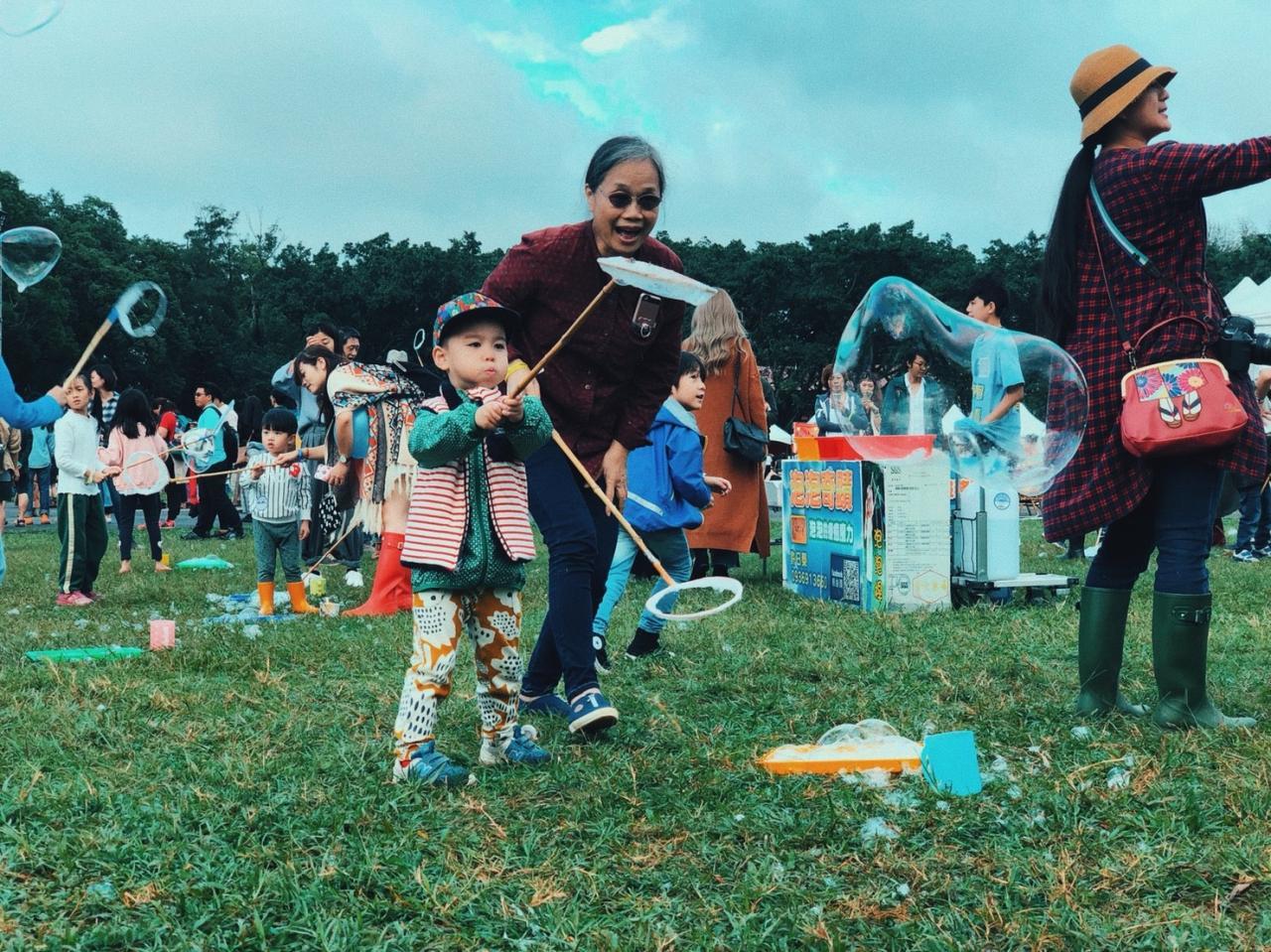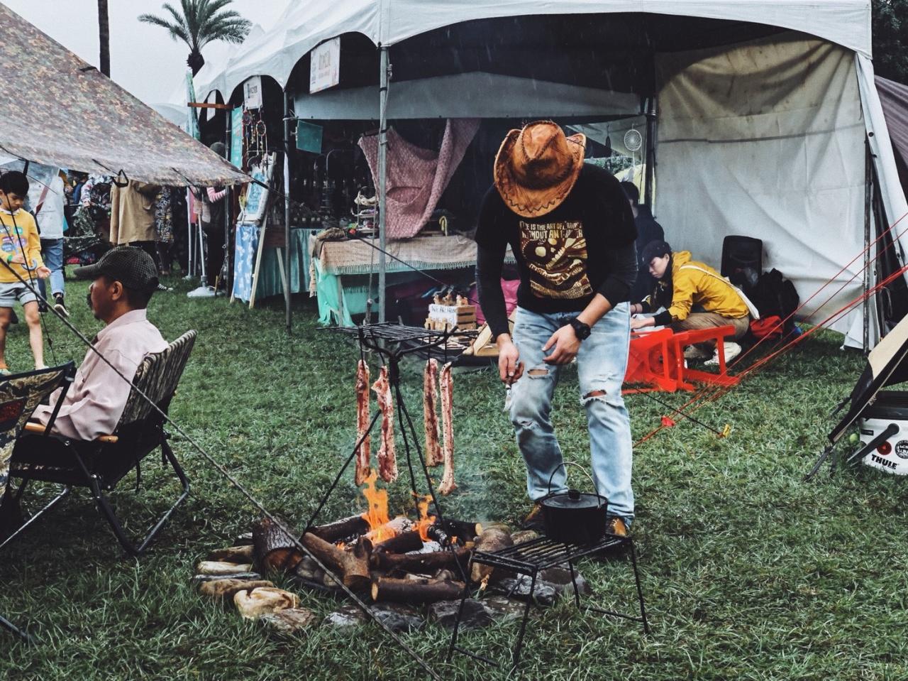 還是得說埔心牧場的地大的不可思議,像是為了專門舉辦這種戶外音樂季而存在,掛在露營樹架上的迪斯可燈在相呼硬的歡笑聲中閃爍,非常適合情侶兩人在下面跳個華爾滋,草地上的泡泡隨著大人們的體驗、孩子們的跑跳中爭相往空中飛去,少不了的是日本人爽朗的笑聲與啤酒在空中杯觥交錯,花棍在日本女孩中像是有特別的魔力一樣在空中選轉著,販賣部掛上許多日本的祈福吹笛精靈,大會聯名的周邊商品早就畫上大叉叉宣示售鑿,大家穿上各式各樣的雨靴在雨過天晴的水窪上踩踏,如果你沒去過日本的道地戶外音樂季,你會在這邊找到一模一樣的感覺!