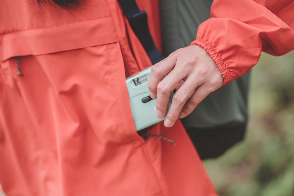 ▲除了外套能收納之外,身旁背包柔軟材質的設計,也方便出遊時捲起來攜帶於行李中。