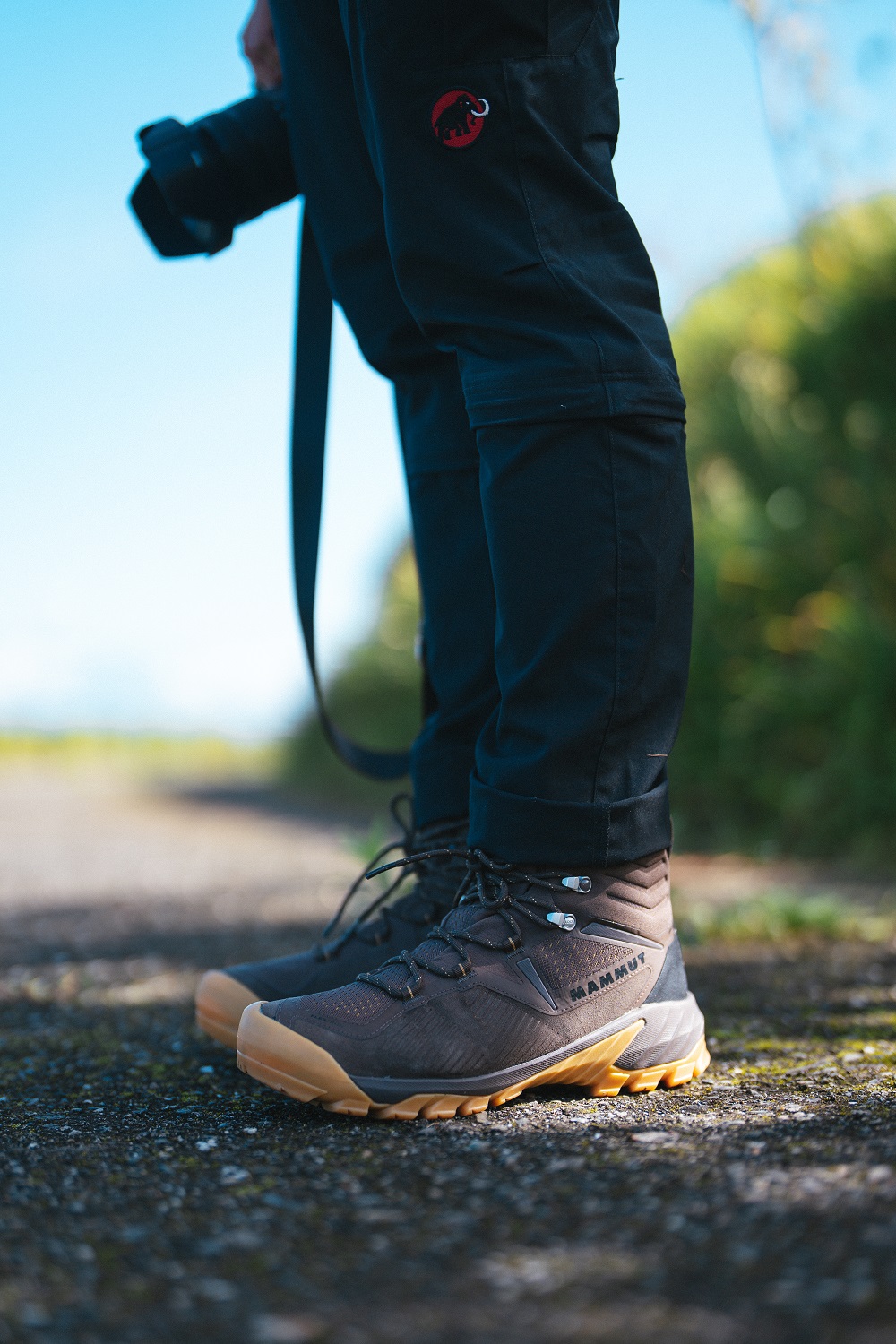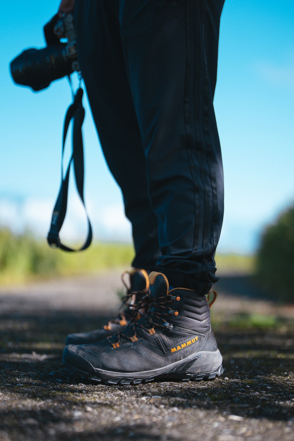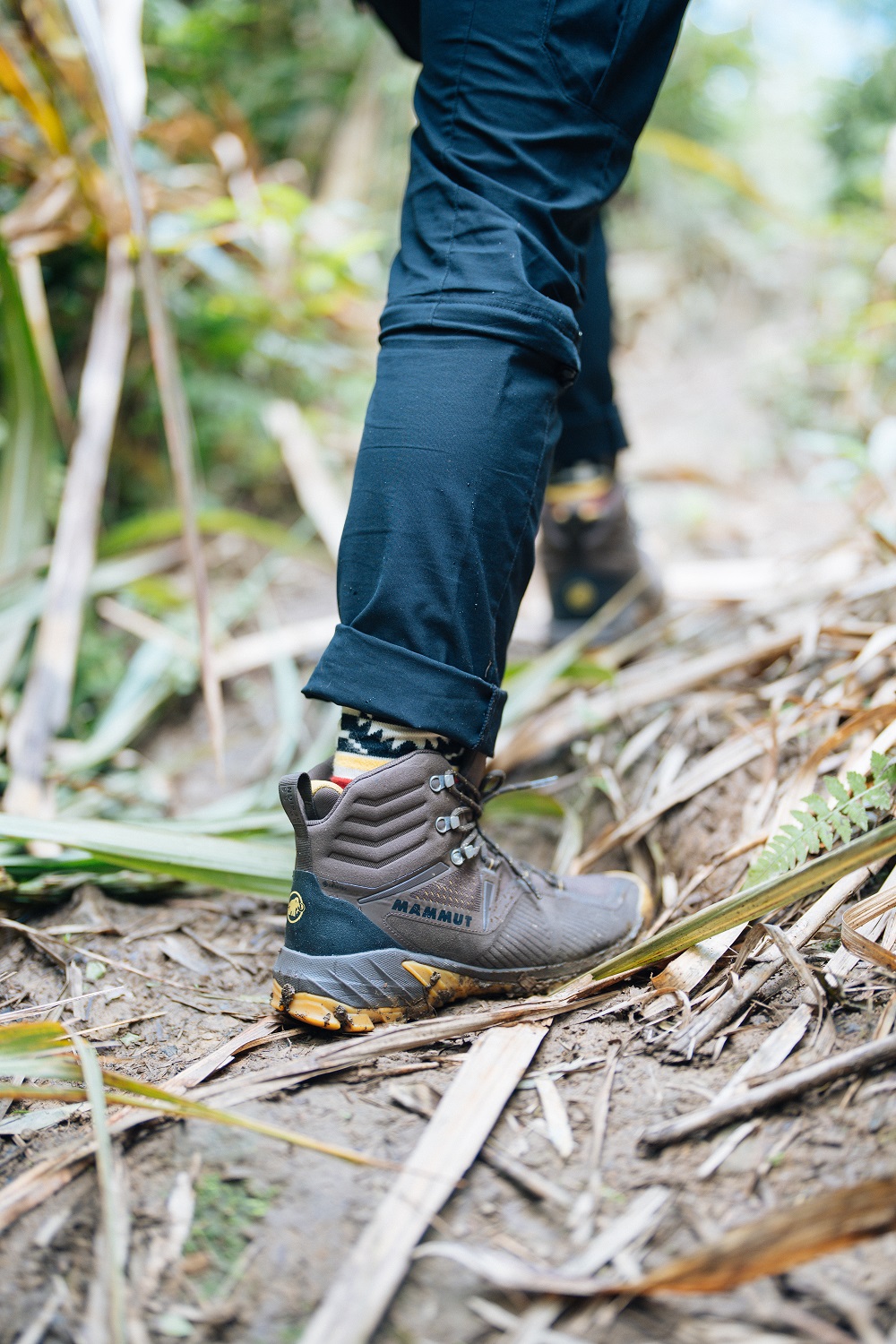我很喜歡MAMMUT的登山鞋,除了外型很好看之外,也很適合我的腳,在這麼多行程中從來沒有任何磨破皮或是起水泡的狀況,加上我又是習慣重裝的人,都需要背攝影器材,所以每次上山都會背負20公斤以上,這時候鞋的好壞就會非常重要,就算不小心摔倒,也可以盡可能地保護腳踝。