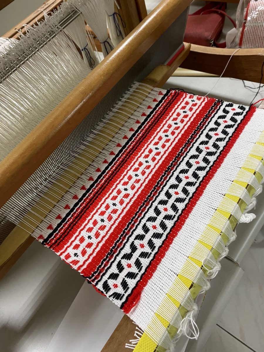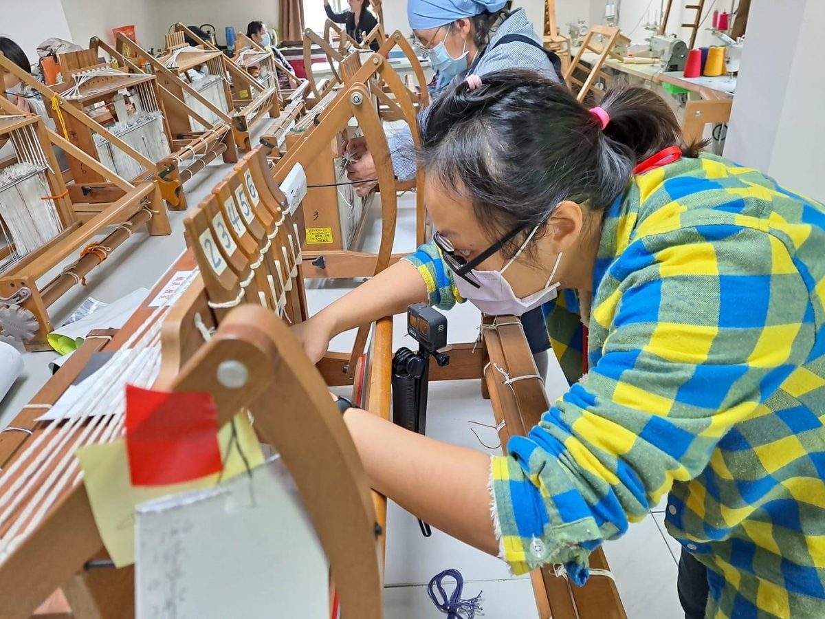 「從我國小,就看我媽媽一直織布。國中半夜,我不是像其他同學早就躺在床上呼呼大睡,而是幫媽媽整線。」高玉玫苦笑,「後來我媽買了三個織布箱,說未來三個女兒一人一個,希望透過我們的手,把織布文化傳承下去。」高玉玫後來自己也投入織布的行列,從最基本的技術學起,漸漸地加入自己的創意、玩轉色彩。她說:「這個文化如果不學,真的就沒了。」