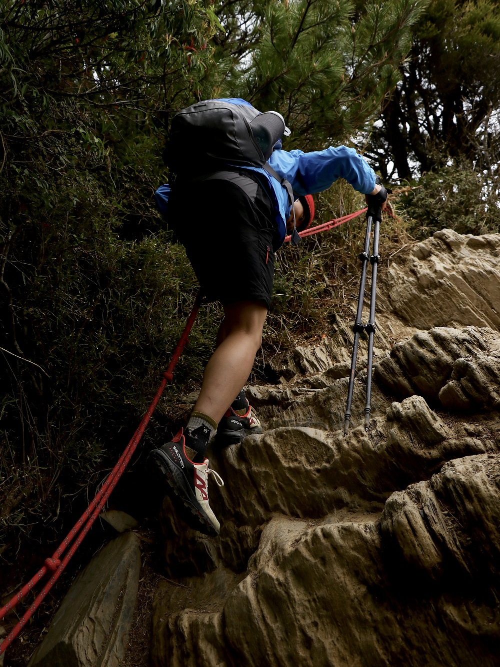 這趟改當外拍攝影師、背著11公斤攝影裝備的沙沙則表示這雙鞋能承受的極限重量「頂多再比這重一點」。不過就整趟行程來說,軟硬適中的Salomon OUTpulse GTX還是提供了非常舒適的輕裝登山體驗!