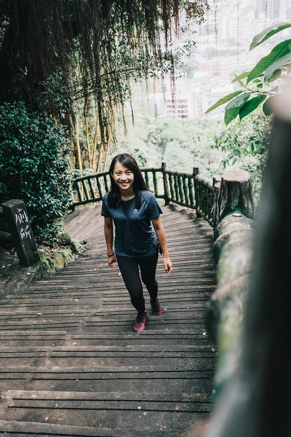 當天雖然是陰天,但是空氣濕度非常的高,查了天氣預報顯示當日濕度為87%,所以雖然短短1小時的健行,但是行經過程是非常的悶熱,而且一開始都是陡上的階梯,流了很多汗呢,但這件 BLACKCOMB 排汗衣採無縫編織,布料順著身體曲線服貼肌膚,吸濕排汗效果極佳,一下子上衣很快就乾了。