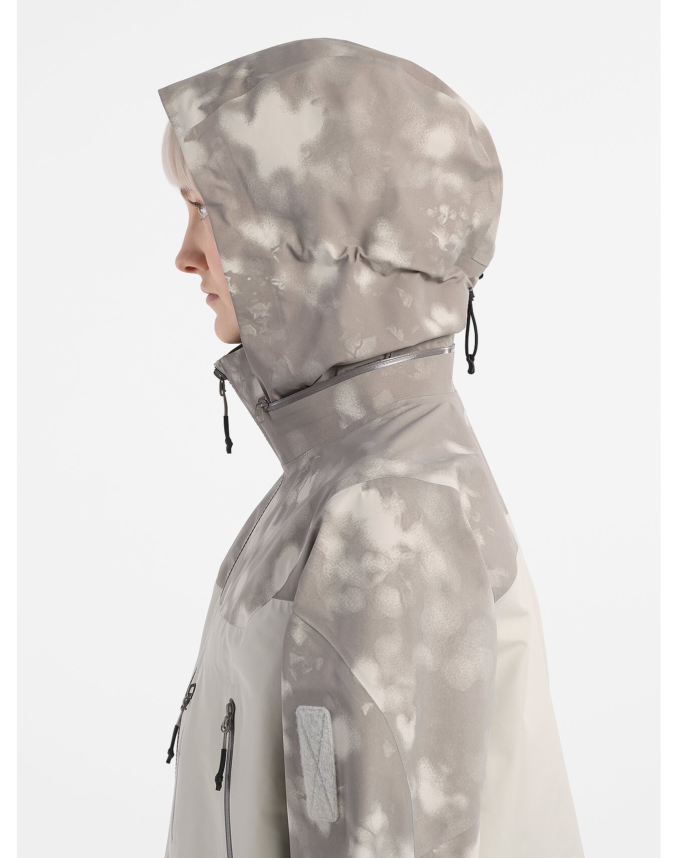 ▲ STONLE KOMOREBI JACKET 有別於以往始祖鳥素面的設計,渲染印花增添了些街頭感。 布料材質:3L GORE-TEX,售價:£600。