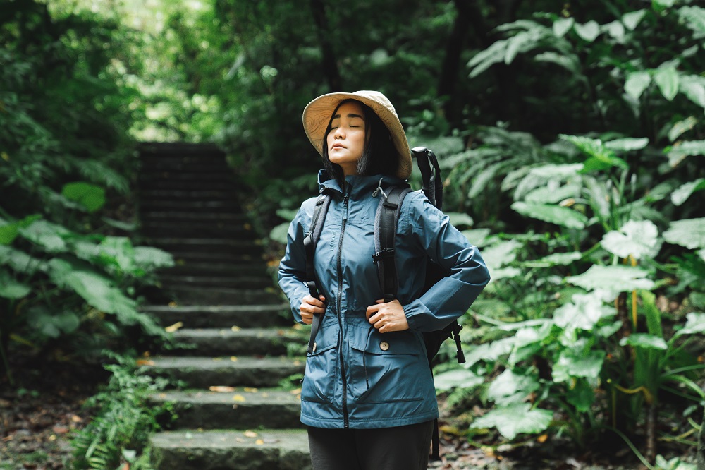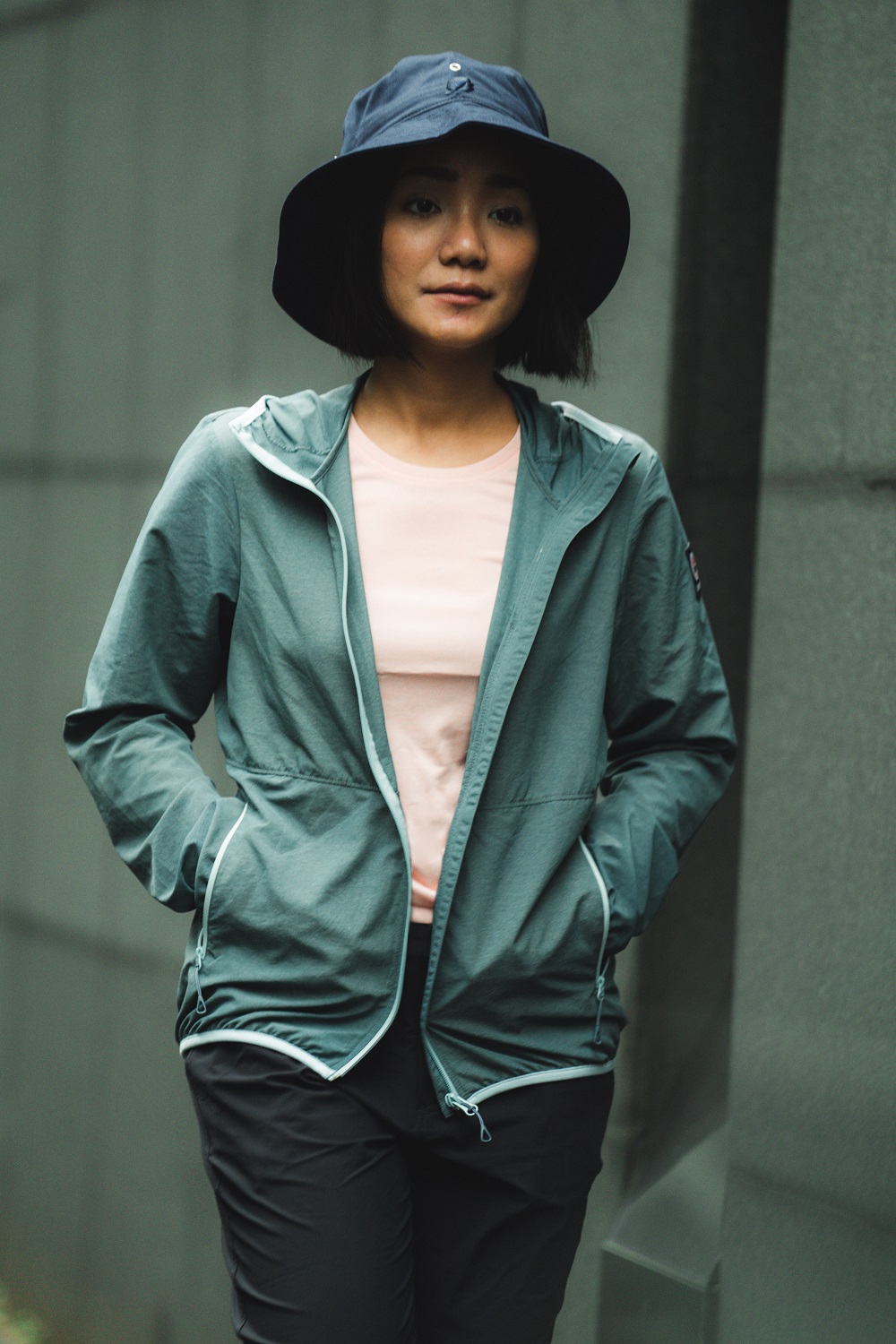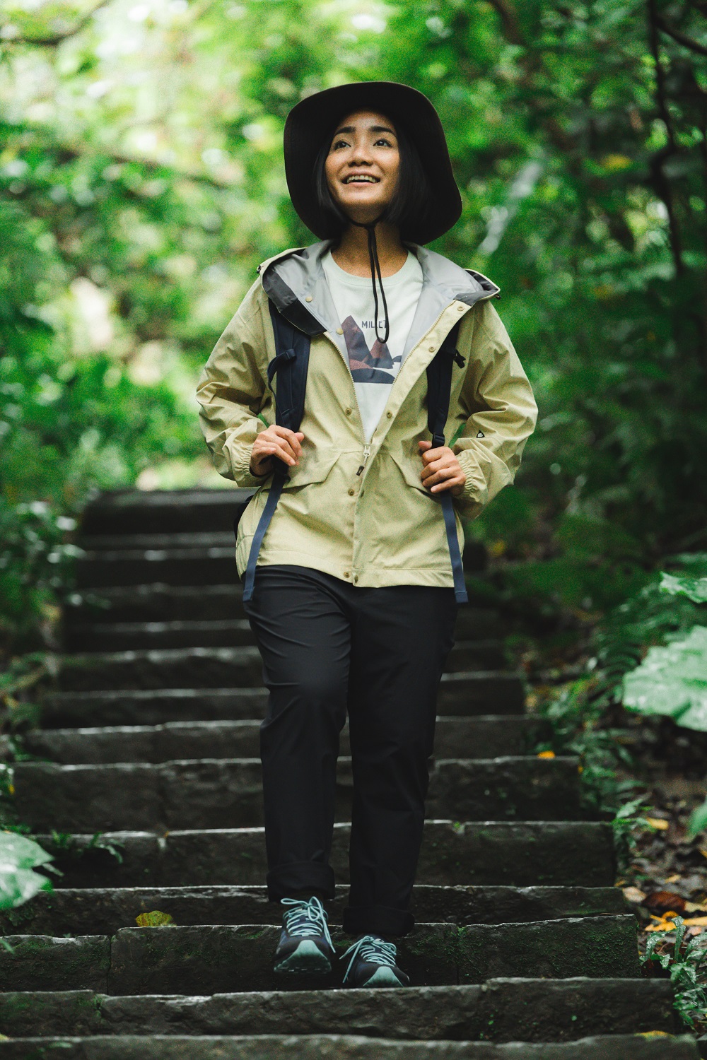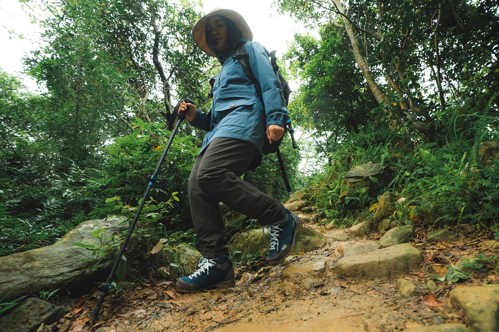 ▲具有Lafuma獨創科技CLIMACTIVE®,採用2L防水透氣面料以及再生彈力網眼襯裡,能讓身體不會感到潮濕寒冷,且透氣度與散熱循環效果佳,兼顧防水、防風,同時也能保持透氣不悶熱。Edith在走階梯路線時雖有流汗,但仍隨時保持內部透氣舒爽。