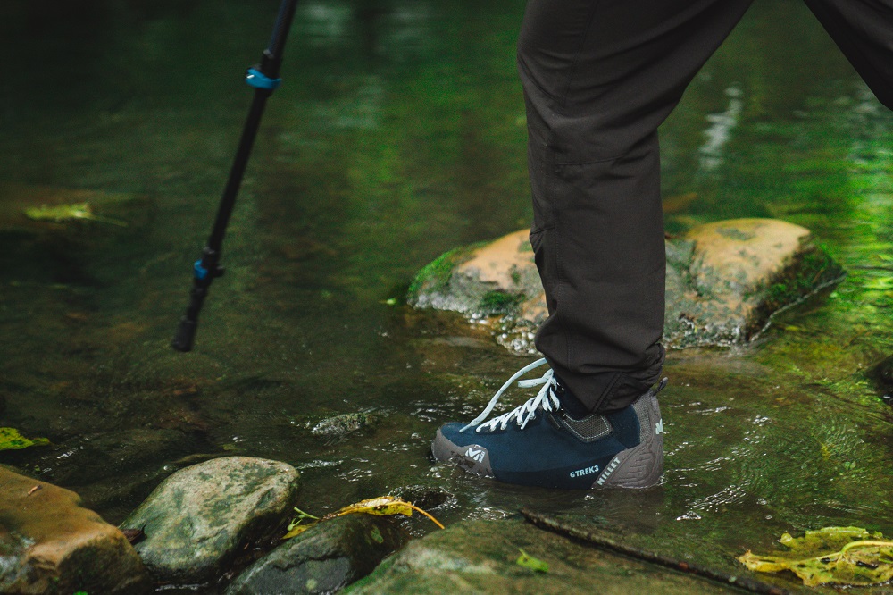 這次Edith實際穿上MILLET G TREK 3 GTX 防水中筒登山鞋,一拿到手上的第一反應是「這也太輕了吧!我平常雖然大部分都是單攻為主,但還是習慣穿重裝登山靴,MILLET G TREK 3 GTX 防水中筒登山鞋雖然很輕,但鞋底還是有硬度,每個步伐踩起來一樣穩健。」