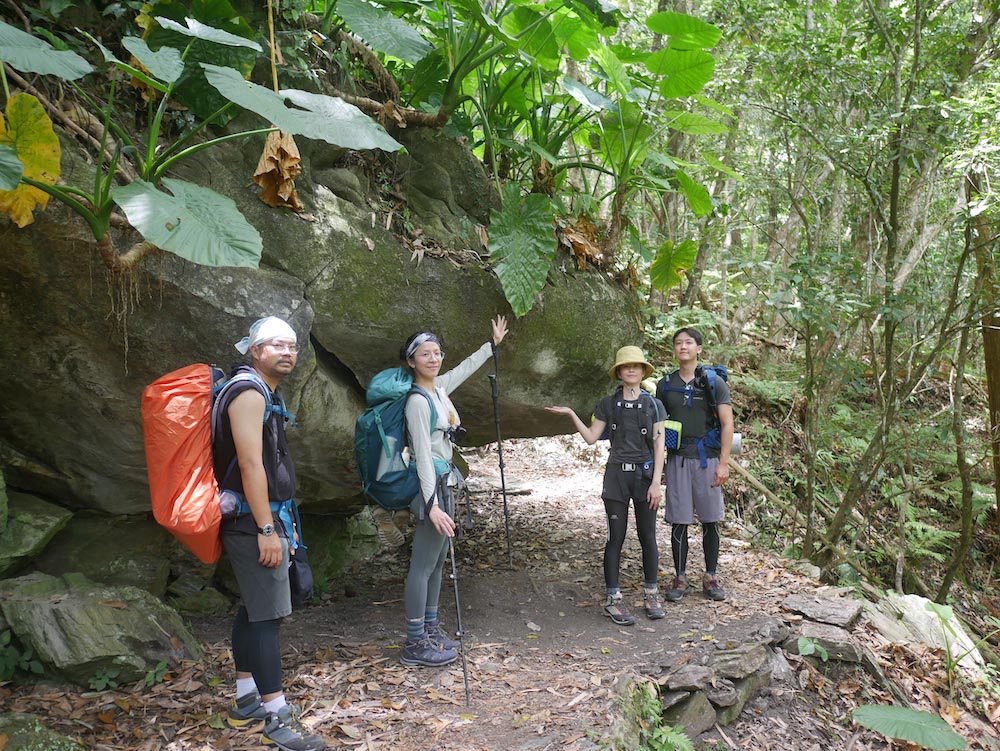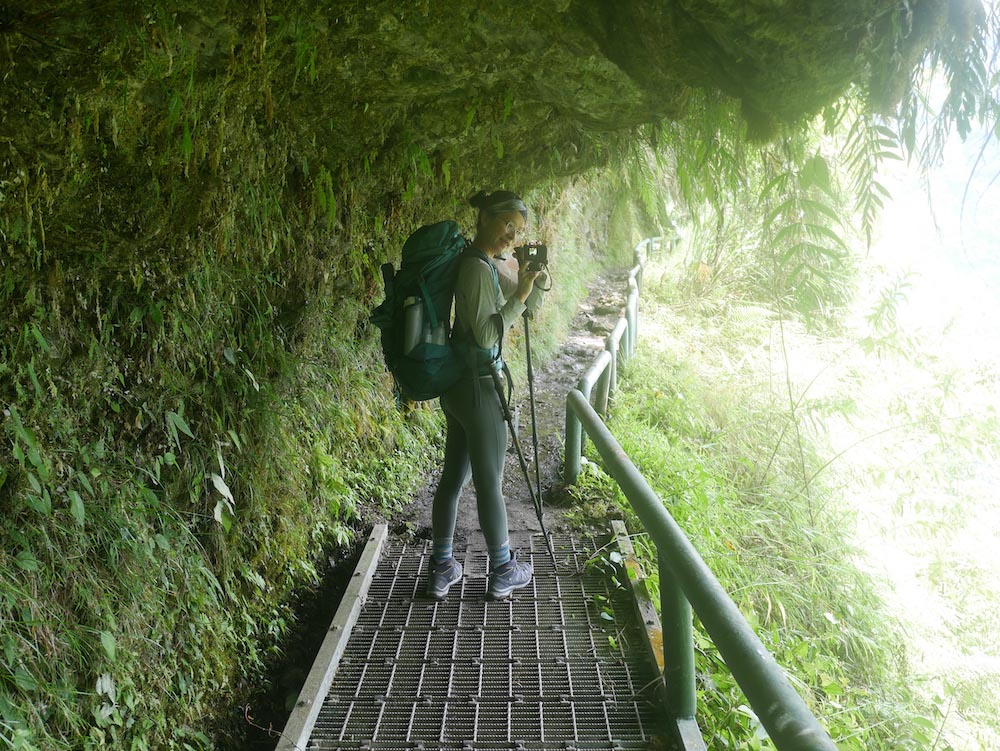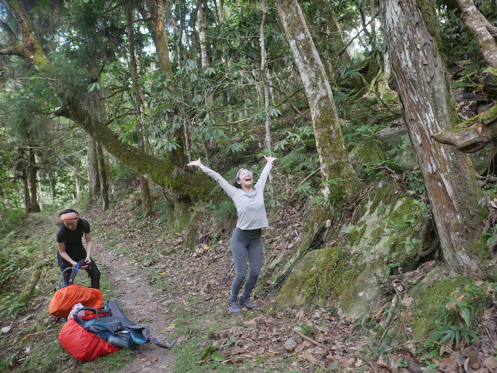 往排雲山莊的8.5K大多為緩上步道,行走起來難易度不高,但因為下著中小雨、路面溼滑(甚至有些地方變成小溪流),導致我們行走速度偏慢、體力也消耗不少。