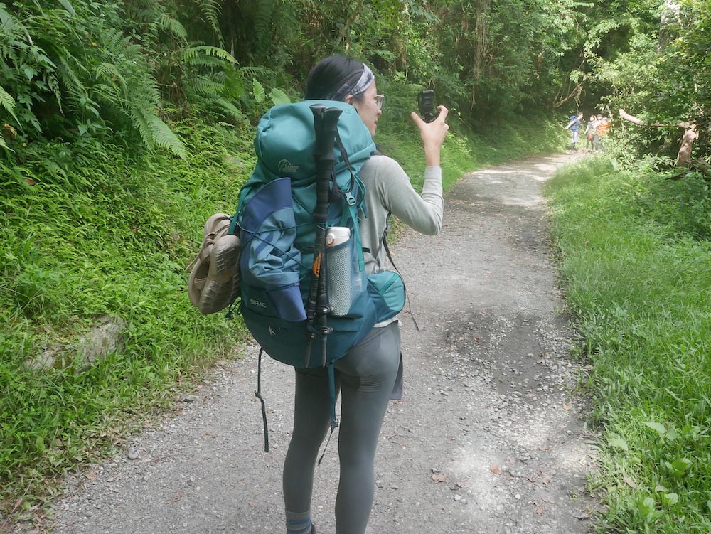 佳心營地前大多為寬敞的平緩道路、遮蔽物較少,天氣雖熱但走起來輕鬆愉快。Sirac 有舒適的 Air Contour™ X 背負系統,背部不悶熱舒爽多了!