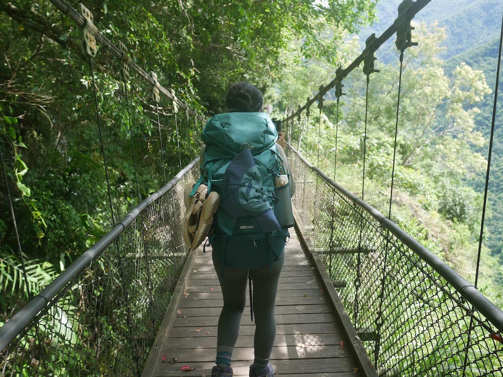 山風一號吊橋,登山口就在不遠處啦!這段步道雖然路程長,但全段平緩好走,適合想要重裝訓練體力的山友們來走走!