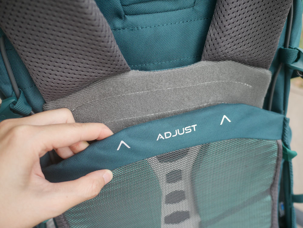 可調整背長,依照每個人的背長做調整。拉起魔鬼氈後即可調整,使用上簡單又方便! (不過魔鬼氈有點黏,但背長固定後會更加穩定喔!)背長範圍在43-48cm之間,適用性很高。