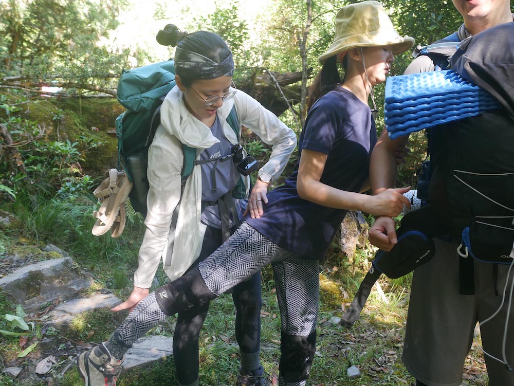 朋友走到膝蓋不舒服,趕緊幫他處理一下!先把髖關節前側的肌肉放鬆、再誘發臀肌用力,希望能舒服走下山。
