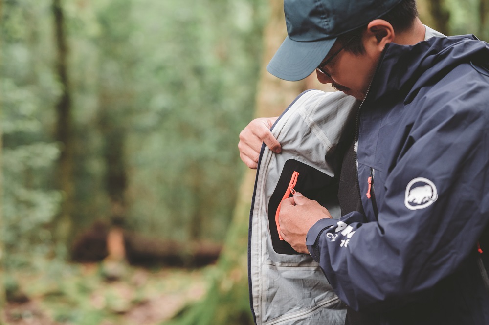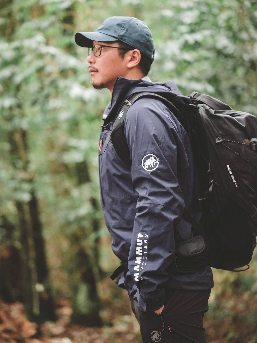 郭熊跟我們分享不久前去奇萊北峰,和今天一樣也是穿著MAMMUT 160 Years Taiss HS Jacket,「當時本來是抱著測試的心態,沒想到行進全程都穿得住,些許出汗是一定會有的,但不會悶熱,這點讓我比較意外。」Taiss選用自家研發DRYtechnology Pro最新三層防水布料製成,保有原本的透氣度,更強化防風防雨性能。