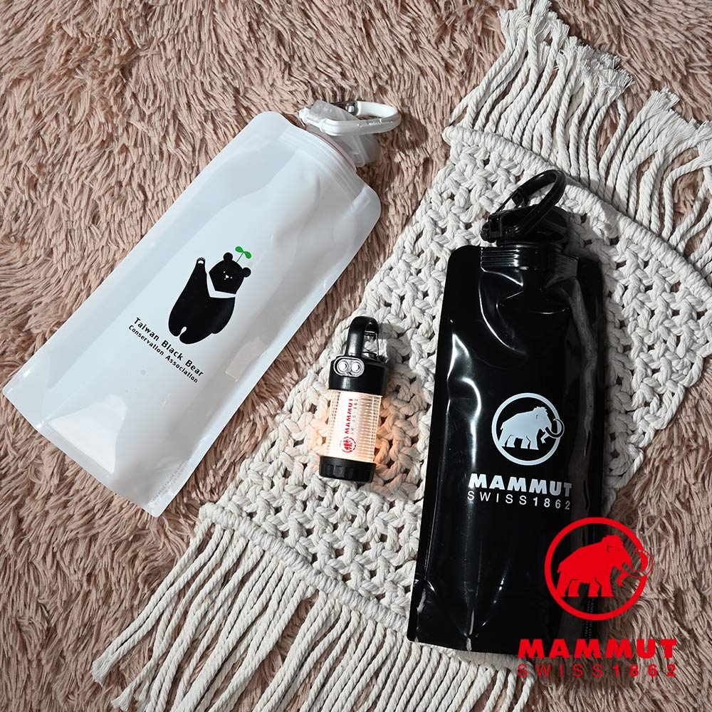 2021年 MAMMUT 與 台灣黑熊保育協會 合作,推出美國VAPUR聯名環保折疊水袋(0.7L) 義賣,每組共兩款(象象水袋+熊熊水袋),每銷售一組, MAMMUT 即捐出3%予協會,支持協會成立東部黑熊救傷站,完善台灣在地黑熊保育工作。