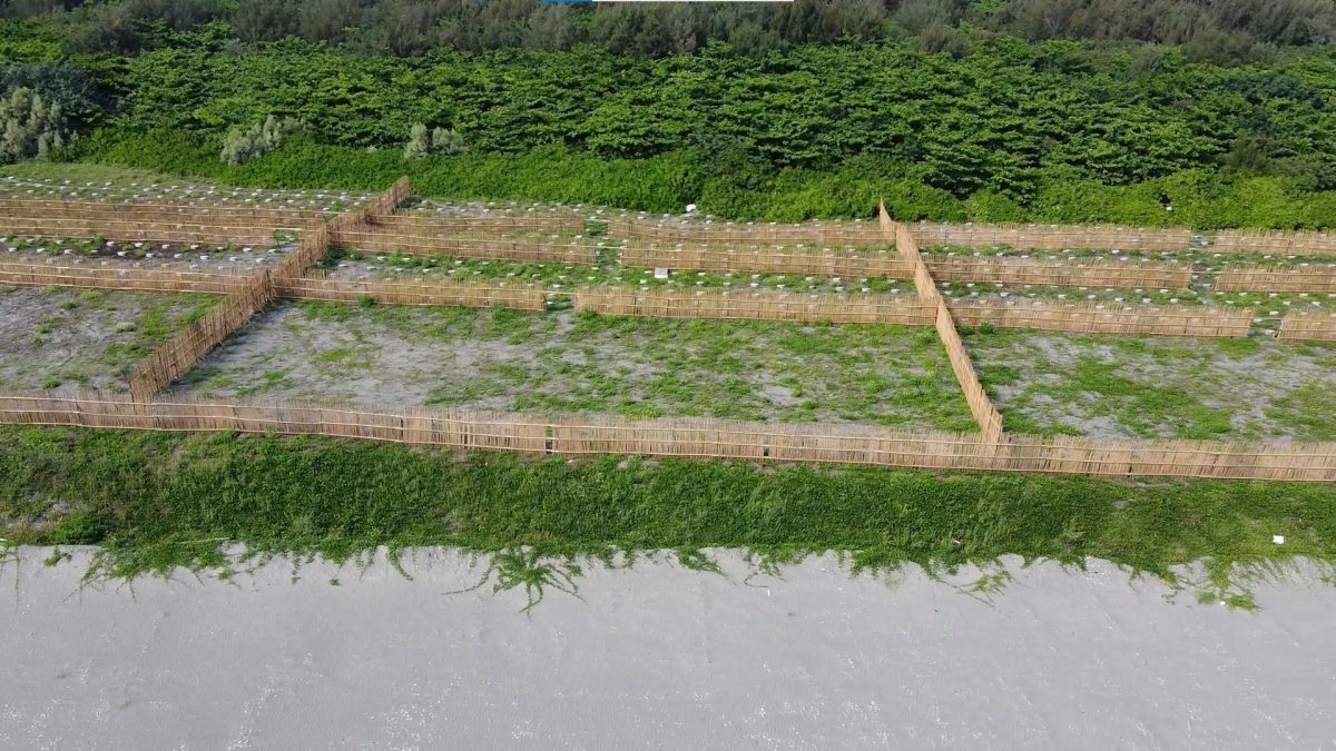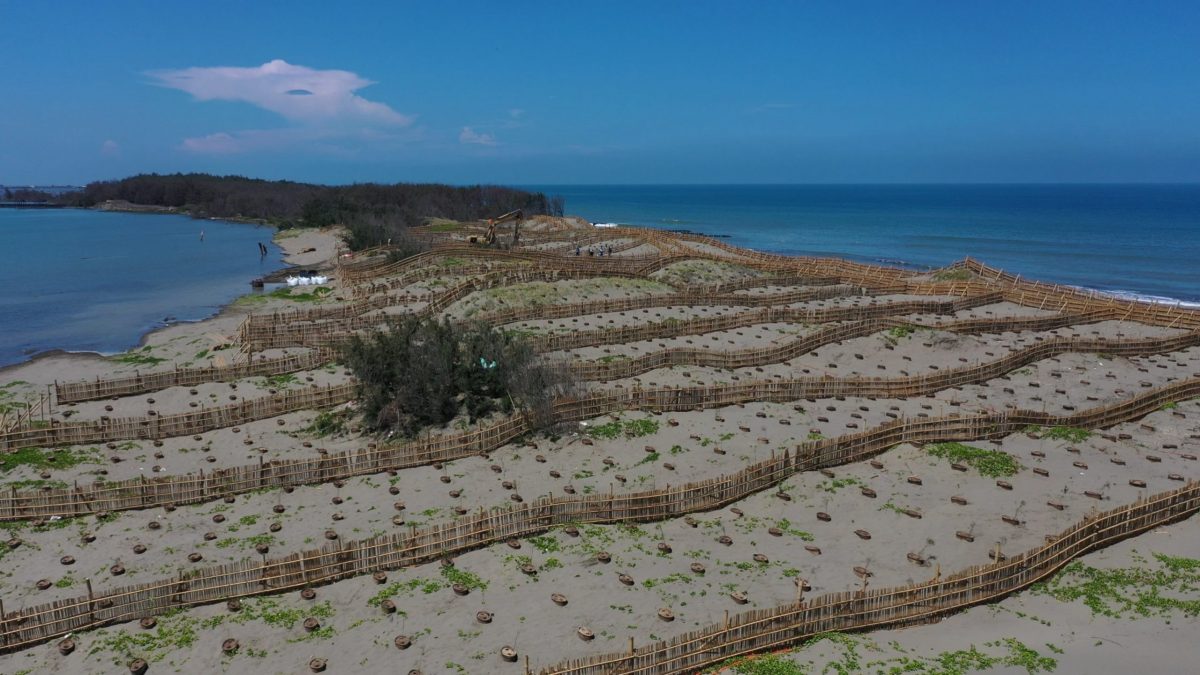 「台灣有些海岸的沙子幾乎都沒了,或是已經被海水淹沒。在海邊種樹,不僅可以透過樹木的根系鞏固沙子,還可以攔截往內陸吹的沙子,進而抬升沿海地勢,減緩海岸退縮。」程禮怡總監繼續舉例:「在桃園許厝港地區,林務局設置了堆砂籬,我們則在堆砂籬後方種樹。原本退縮嚴重的許厝港地區,現在沿海沙丘高度已經來到 10 公尺以上。就算海水不斷進逼蝕,我們也透過海岸林攔沙、固沙,有效減緩、停止海岸退縮問題,甚至抬升海岸線地形。」