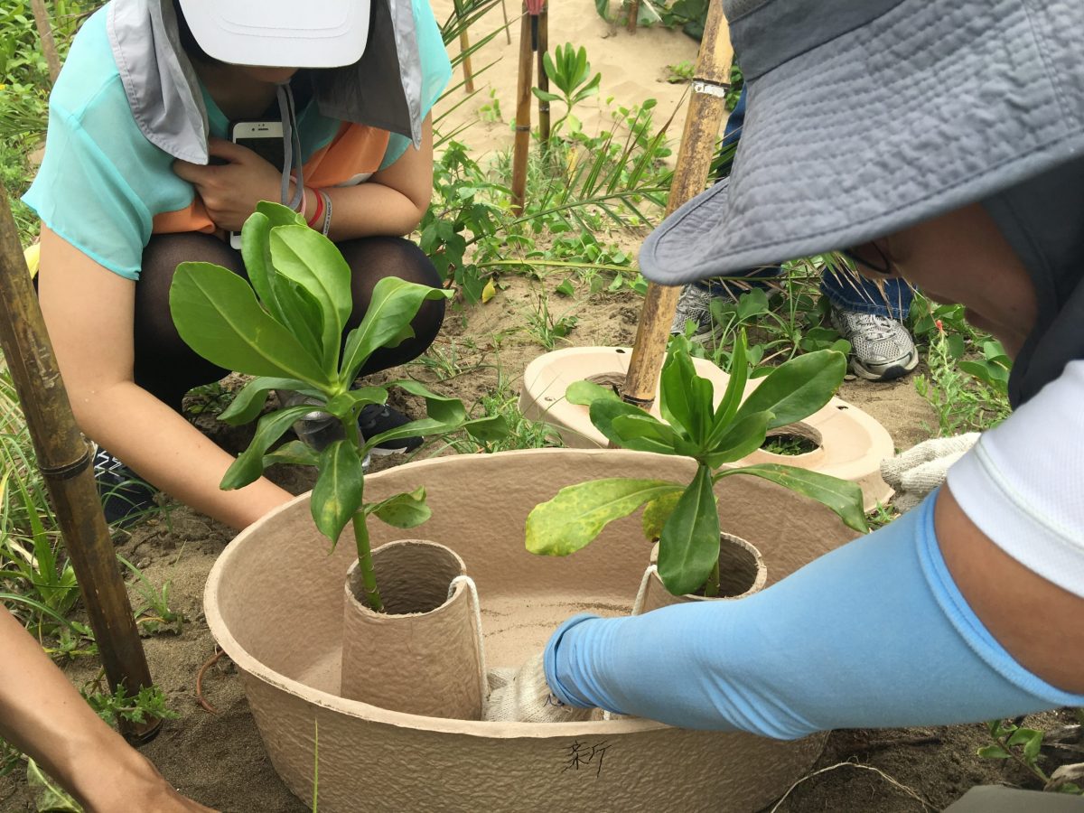 「你知道夏天的沙灘幾度嗎?我們曾測得最高溫度來到攝氏 90 度!但水寶盆只有 45 度,等於提供了樹木良好的微型氣候,讓他們可以在『順境』中成長。在離島地區,水寶盆的效用發揮得更加極致。我們到金門海岸線種樹,當地海岸線曾經前前後後種了五次都失敗,我們利用水寶盆,成功在那塊地種出樹來,而且長得很好,後來進一步到社區外圍用水寶盆恢復了防風林,像斗門社區,當地居民都好開心,還拿我們種的黃槿葉作為紅龜粿的襯底。」程禮怡總監開心地說。